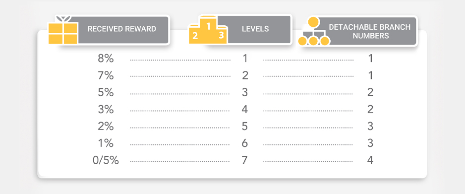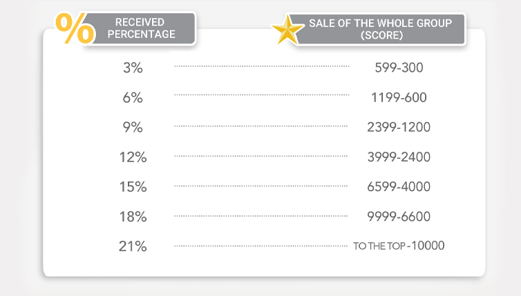 When one of the downline sales groups of any sales consultant reaches the 25% rank, it is considered a separated group, and 9% of the sales value of that group's sales volume will be paid to the consultant as a reward.