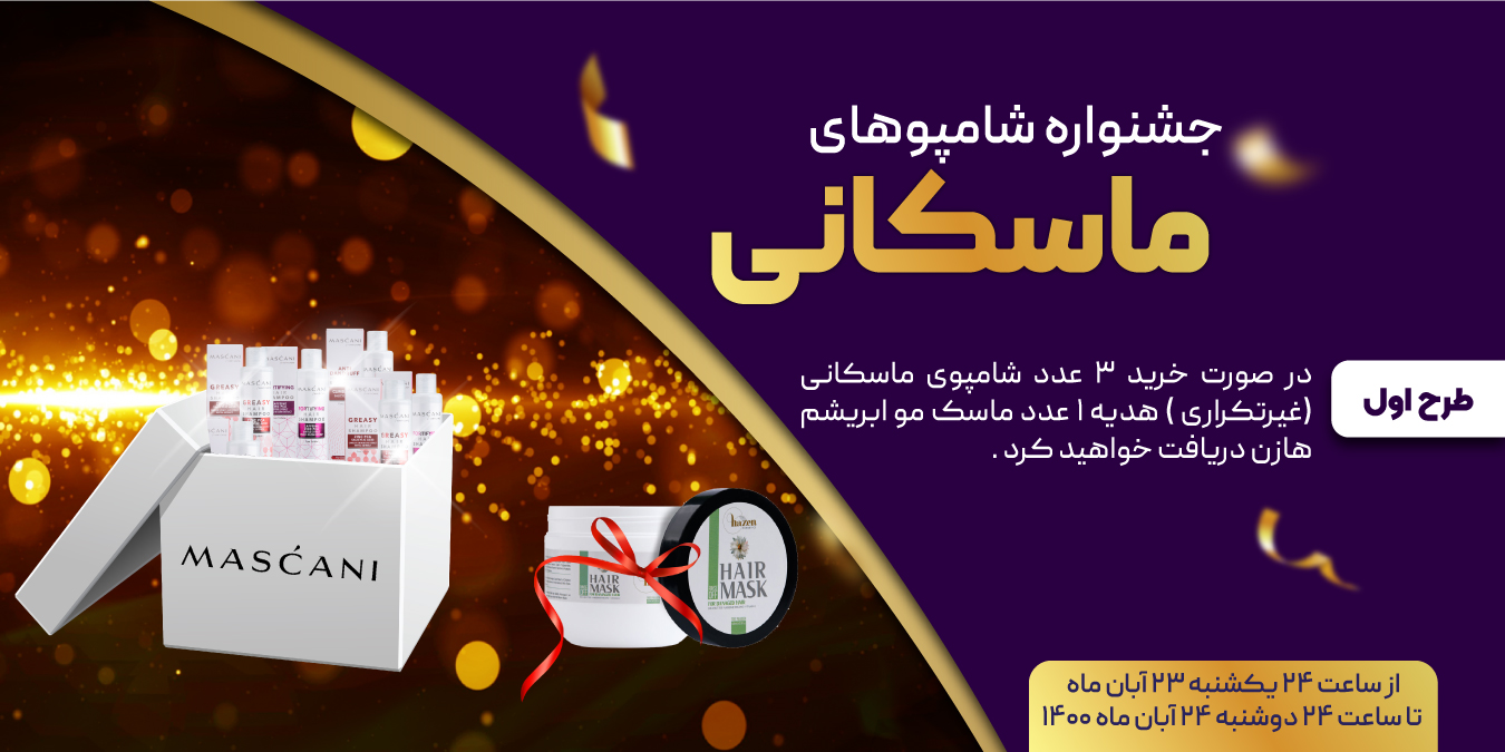 دومین بخش جشنواره شامپوهای ماسکانی از ساعت 24 پنجشنبه 25 آذر ماه آغاز و تا ساعت 24 جمعه 26 آذر ماه 1400 ادامه خواهد داشت .